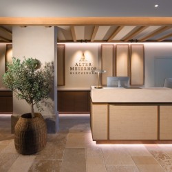 Der Alte Meierhof liegt direkt am Ufer der Flensburger Förde in Meierwik, einem Ortsteil von Deutschlands nördlichster Stadt, Glücksburg. Heller Sandstein und dunkles Fachwerk prägen die Landhaus-Architektur des 5-Sterne-Superior Hotels, das 60 Zimmer und Suiten beherbergt und sich harmonisch in den parkartigen Hotelgarten einfügt. Die Meierei Dirk Luther gilt als kulinarisches Aushängeschild des Hauses. Seit 2008 verleiht der Guide Michelin durchgehend zwei Sterne und lobt Dirk Luthers präzise Verarbeitung bester Produkte in harmonischer Verbindung mit modernen Elementen. Der Gault Millau bestätigt mit 4 schwarzen Hauben seine Kochkünste und stetige Weiterentwicklung. Bei traumhaftem Meerblick speisen die Gäste unter Leuchtern aus stilisiertem Geäst oder zelebrieren bei schönem Wetter ihr Sternemenü unter freiem Himmel auf der spektakulären Fördeterrasse. Kulinarisch hat das Hotel noch mehr zu bieten: In der Brasserie mit französischem Wintergarten werden erstklassige Kreationen aus der offenen Küche serviert und die Bodega entführt authentisch zu einem Kurztrip nach Spanien. Die SPA-Welt lädt ein zur Entspannung auf 2.000 m² mit Saunalandschaft sowie ganzjährig beheiztem Innen- und Außenpool, welcher die Hof-Therme mit dem Hotelgarten verbindet. Badegäste schätzen den einzigartigen Blick über die Flensburger Förde auf die dänische Küste. Das international erfahrene SPA-Team versorgt mit perfekten Pflegekonzepten und Verwöhnritualen.